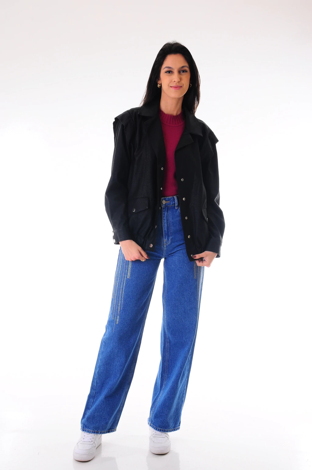 Calça Lez a Lez Reta Jeans com Strass – O brilho que transforma o básico em fashion ✨