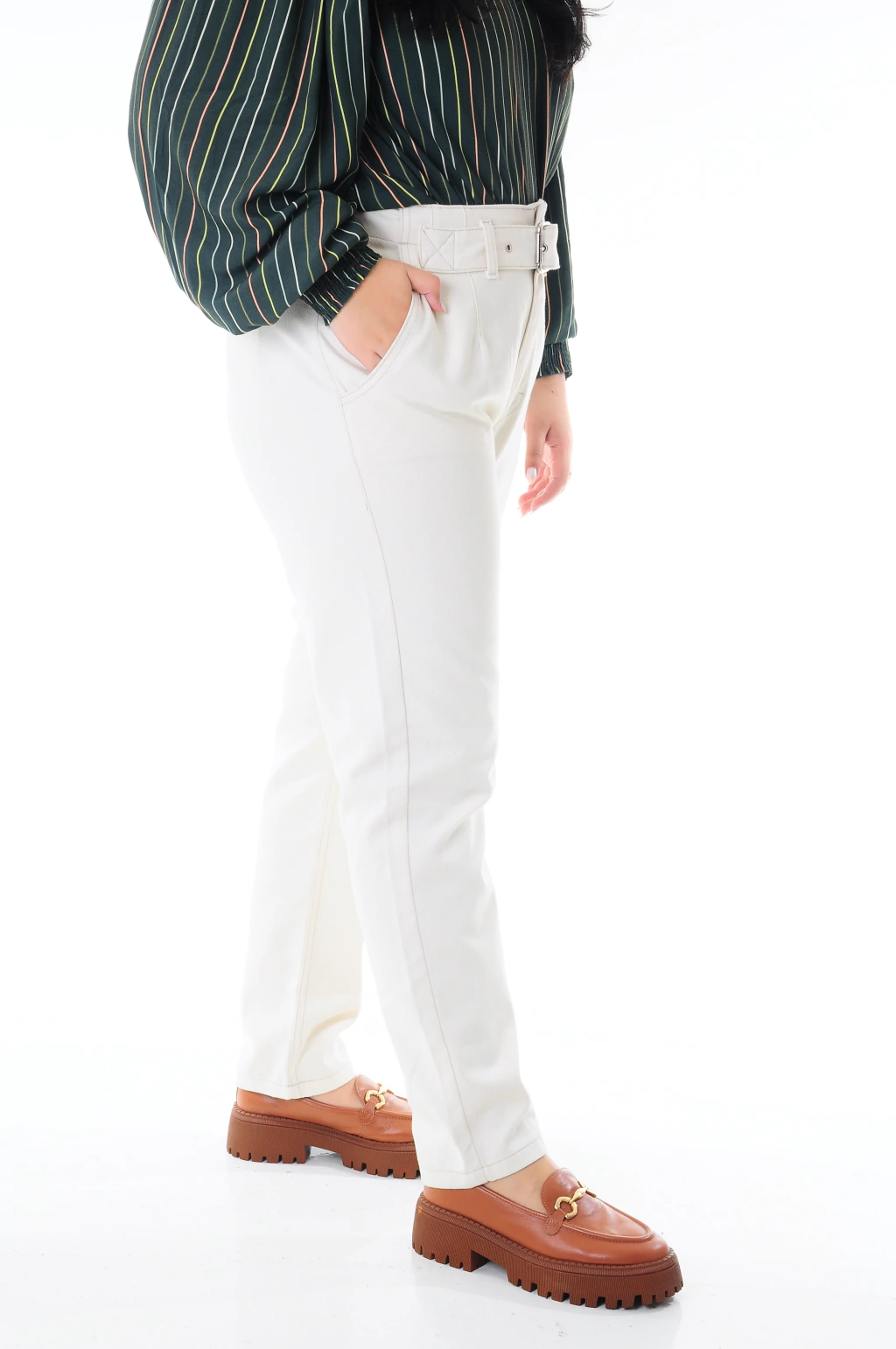 Confeccionada em sarja de alta qualidade, possui toque macio e caimento impecável, valorizando a silhueta com elegância. Sua modelagem reta e cós alto garantem sofisticação ao visual, enquanto o cinto acompanha a peça e acrescenta charme extra ao look.